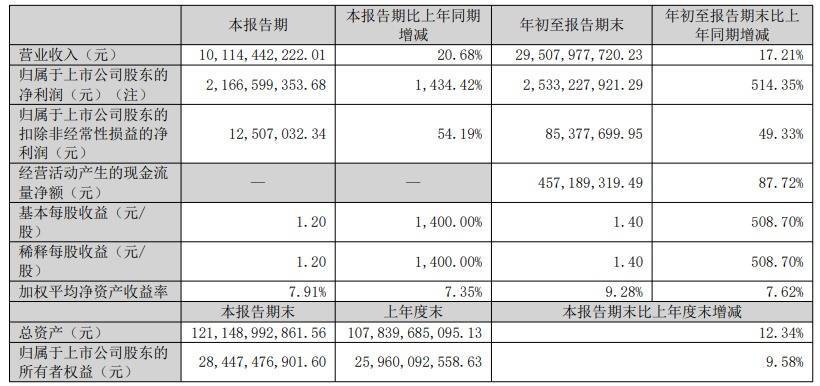 国轩高科第三季度营收为101.14亿元,同比增长20.68%;净利润为21.67亿元,同比增长1434.42%。前三季度营收为295.08亿元,同比增长17.21%;净利润为25.33亿元,同比增长514.35%。